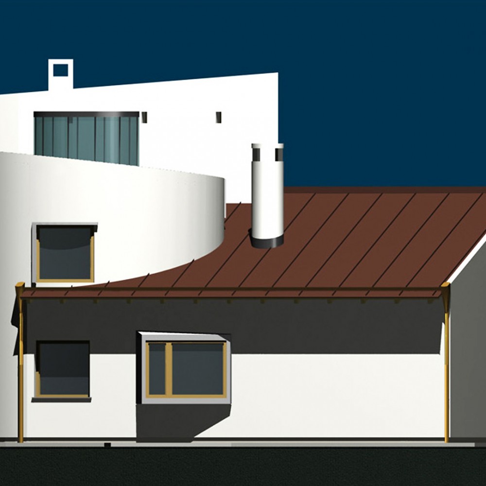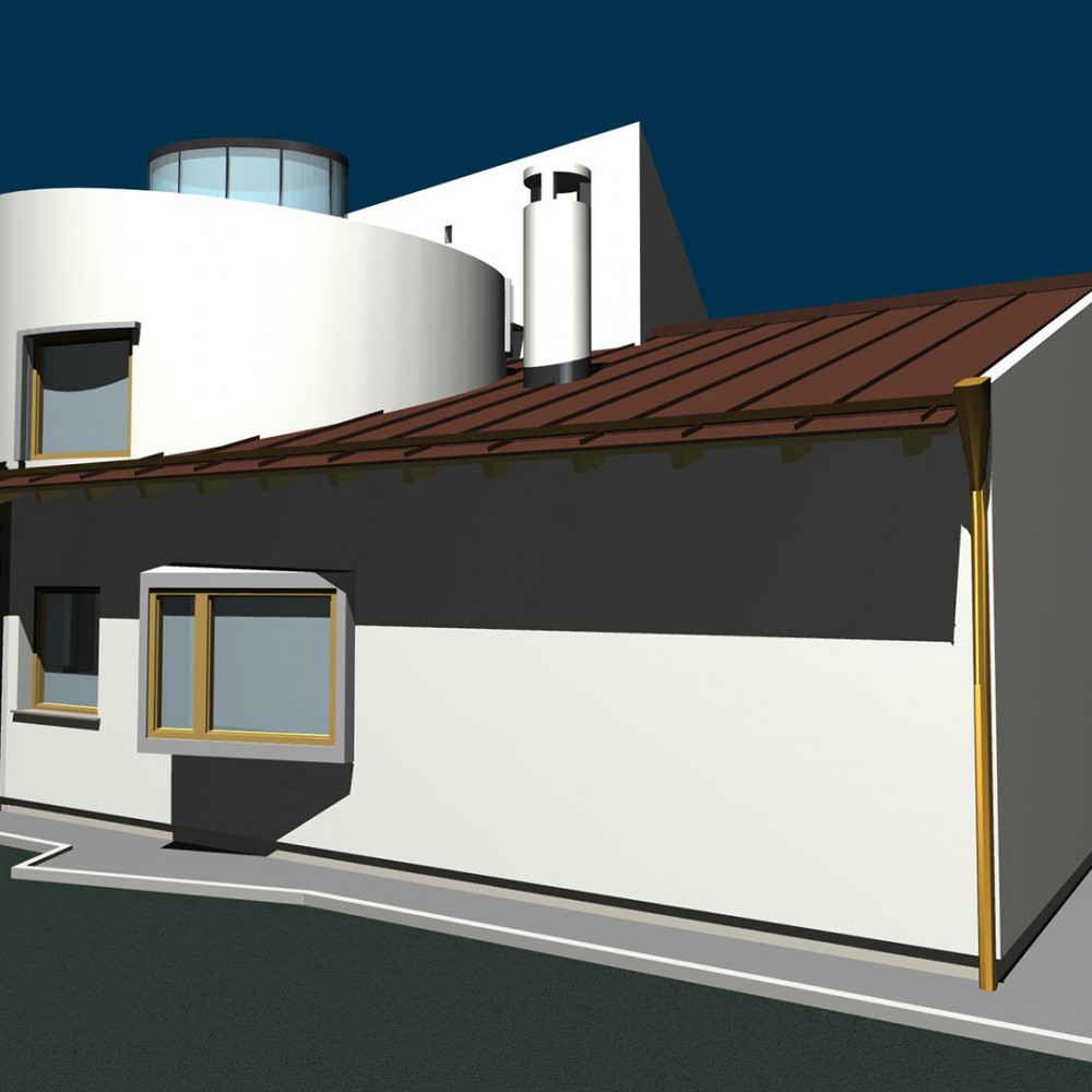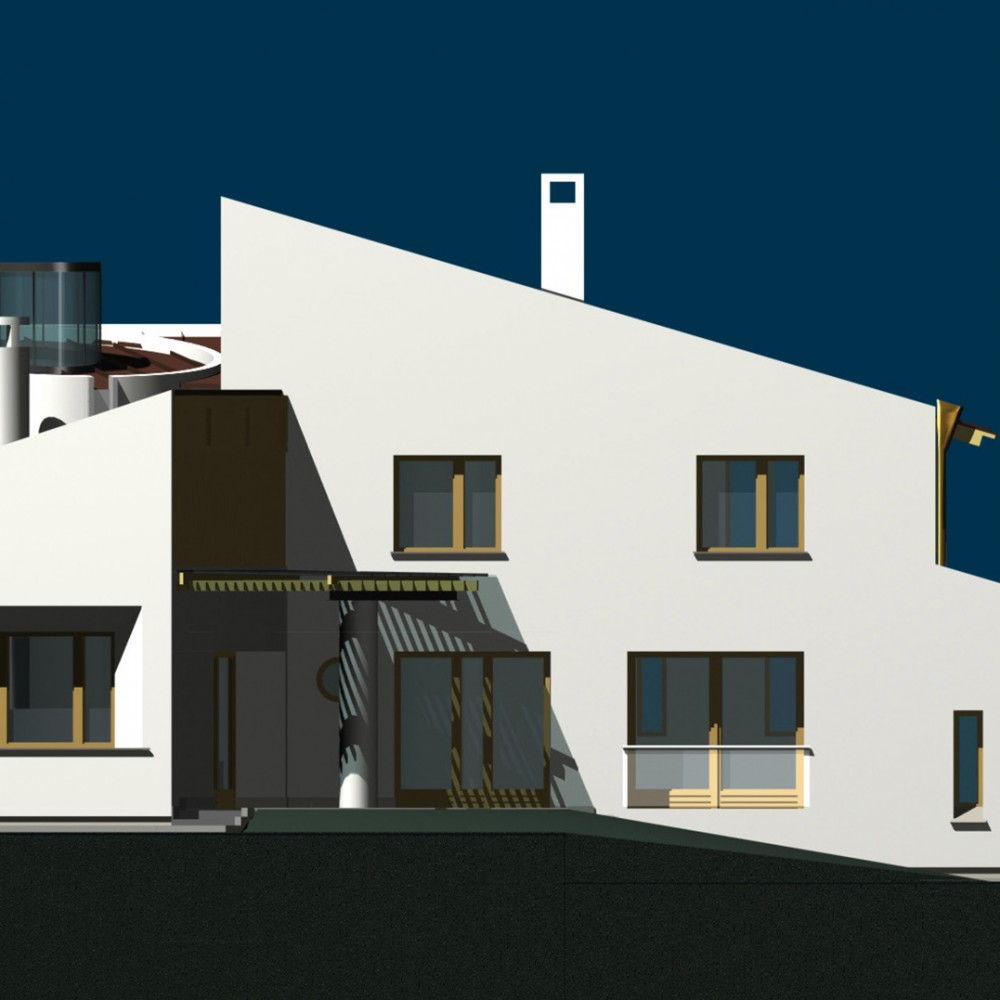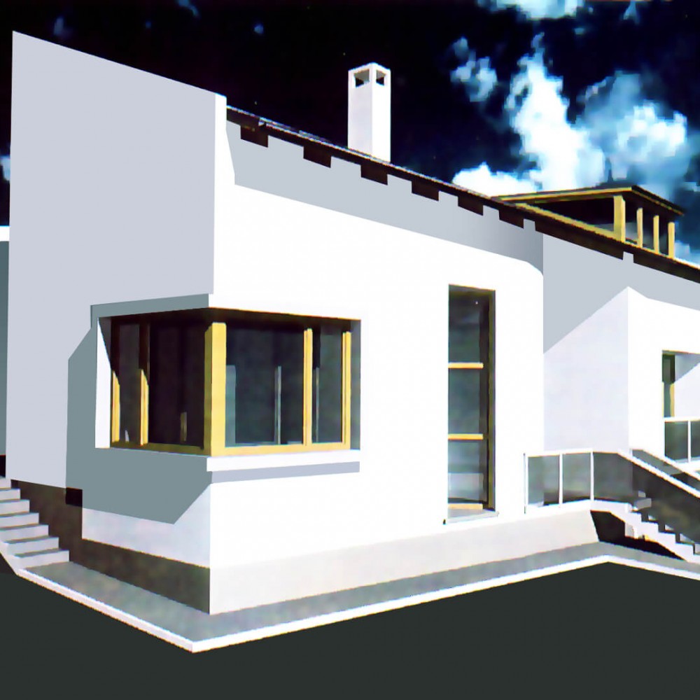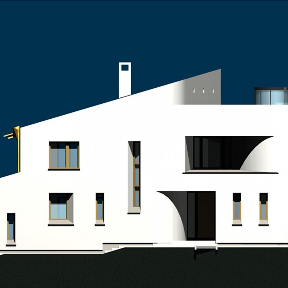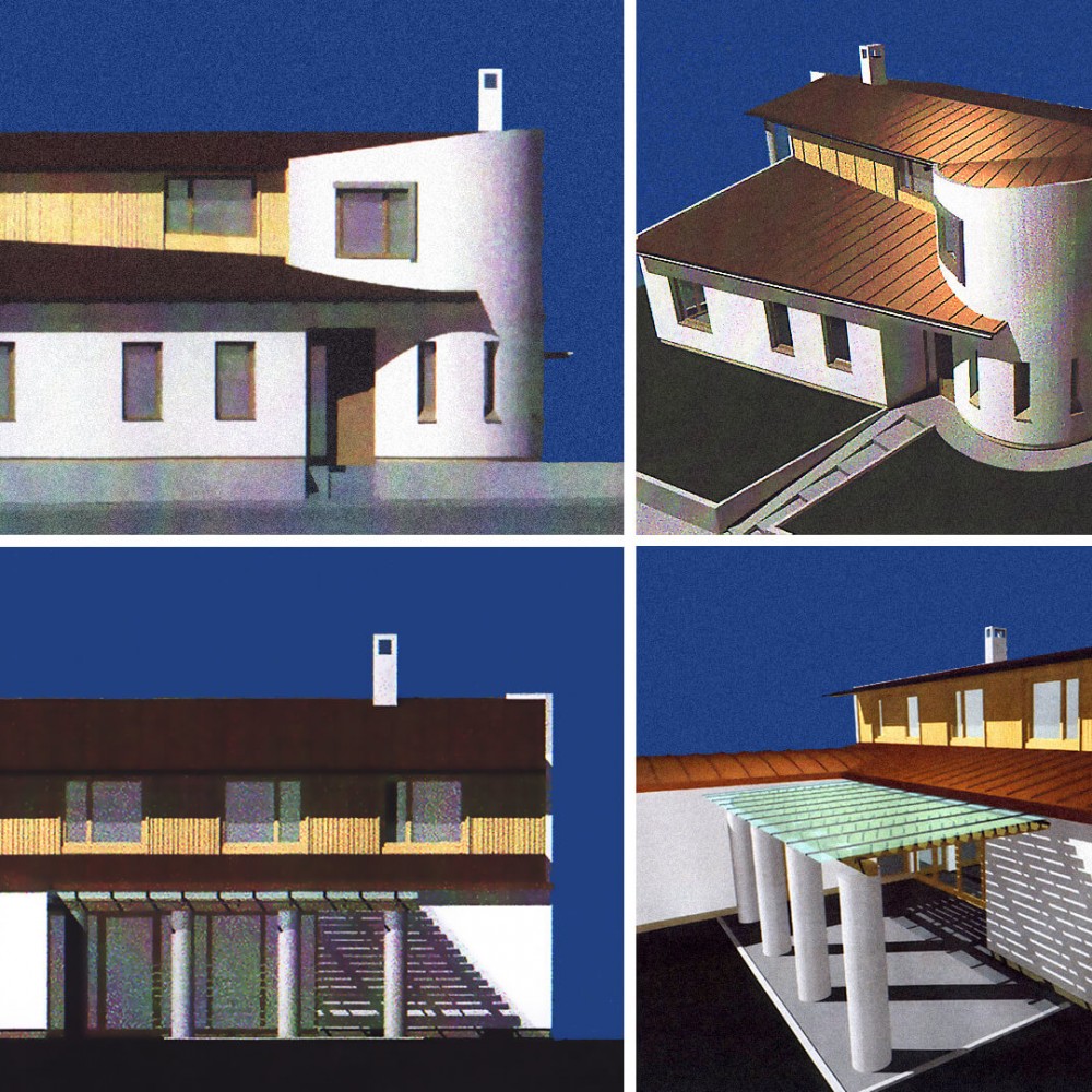 Feladat: Dombtetőn elhelyezkedő új családi házas beépítésű területen egyéni igényt kielégítő családi házak. Az építészeti megfogalmazás vonatkozásában a “modern építészet” kortárs újrafogalmazása. Az épületek homlokzat és tömegalakítása valamint az anyaghasználat vonatkozásában szorosan igazodik a korszak építési feltételeihez.