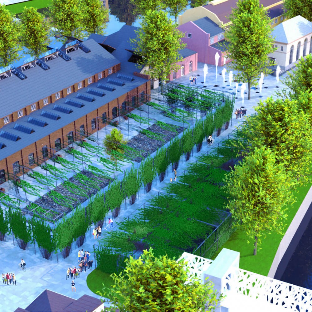 A sziget újrahasznosítására vonatkozó terveket nagy létszámú projektcsoport készítette. A fenti épületek hasznosítási javaslatának építészeti koncepciója készült irodánk részéről.