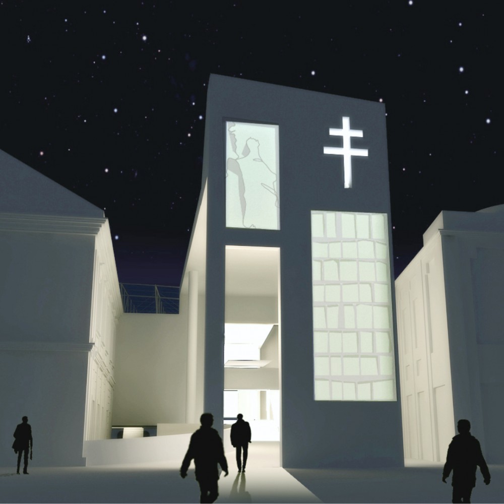 A templom megmaradt romkertjét megvédve, a temetkezési helyek visszaállításával és a koronázási szertartásokhoz tartozó oltár pótlásával terveztük meg a helyszínt.